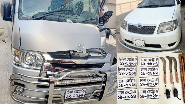 পরে পরিত্যক্ত মাইক্রোবাস থেকে পুলিশ ৮টি নকল নম্বর প্লেট, ২টি ওয়াকিটকি, ৩টি দা ও ৩টি লাঠি উদ্ধার করে। উদ্ধার হওয়া নম্বর প্লেটগুলোর সবই ভুয়া বলে নিশ্চিত হয়েছে পুলিশ। গাড়িটির সামনের ও পেছনের নম্বর প্লেটও নকল ছিল।