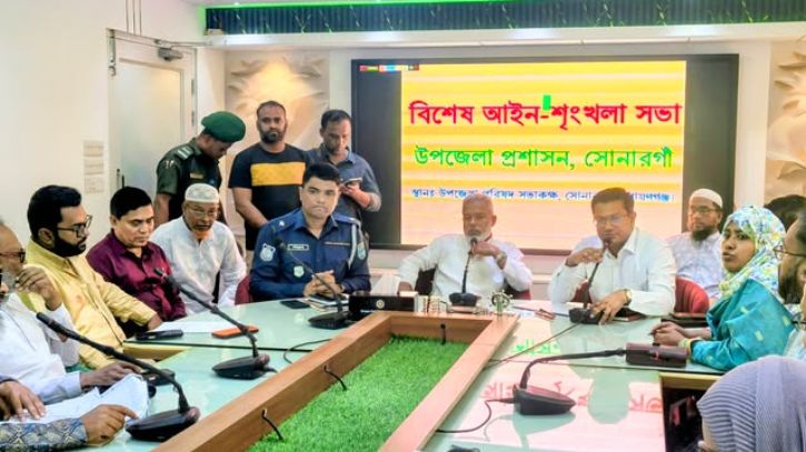 সোনারগাঁ উপজেলা পরিষদের সভাকক্ষে উপজেলা নির্বাহী কর্মকর্তা আসিফ আল জিনাতের সভাপতিত্বে সভায় আরও উপস্থিত ছিলেন সোনারগাঁ থানার ভারপ্রাপ্ত কর্মকর্তা মো. মহিবুল্লাহ, উপজেলা বিএনপির সাধারণ সম্পাদক মোশাররফ হোসেন, জেলা যুবদলের সিনিয়র যুগ্ম আহ্বায়ক খাইরুল ইসলাম সজীব, পৌর বিএনপির সভাপতি শাহজাহান মিয়া, যুগ্ম সম্পাদক সাদিকুর রহমান সেন্টু, উপজেলা প্রশাসনের বিভিন্ন কর্মকর্তা, স্থানীয় চেয়ারম্যান ও রাজনৈতিক ব্যক্তিবর্গ
