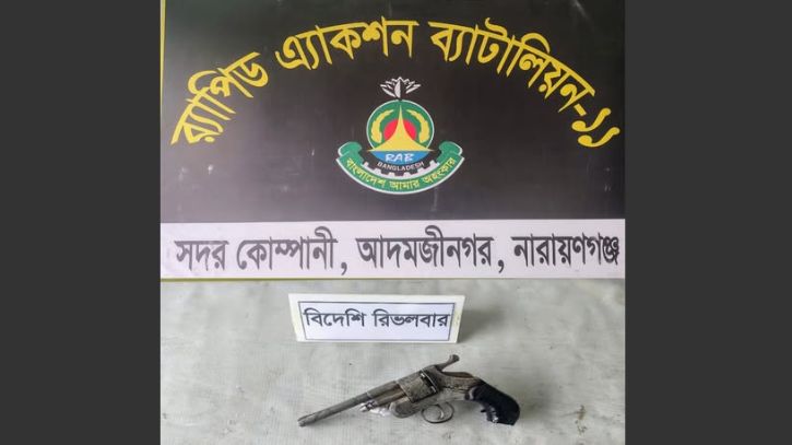 নারায়ণগঞ্জের ফতুল্লায় অভিযান চালিয়ে একটি বিদেশি রিভলবার উদ্ধার করেছে র্যাব-১১।