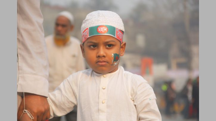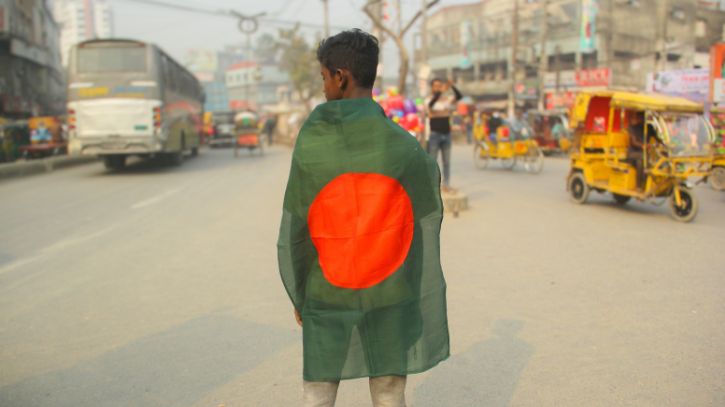 শরীরে জাতীয় পতাকা জড়ানো কিশোর।