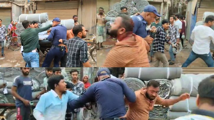 সামাজিক যোগাযোগ মাধ্যমে ছড়িয়ে পড়া একটি ভিডিওতে দেখা যায়, পুলিশের পোশাক পরা ওই এসআই এবং টি-শার্ট পরা কনস্টেবলকে মারধর করছেন কয়েকজন যুবক।