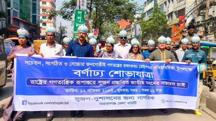 সুশাসনের জন্য নাগরিক (সুজন) নারায়ণগঞ্জ জেলা শাখার উদ্যোগে সংগঠনটির প্রতিষ্ঠাবার্ষিকী বর্ণাঢ্য আয়োজনে উদযাপিত হয়েছে। বুধবার (১২ নভেম্বর) সকালে শহরের চাষাঢ়া কেন্দ্রীয় শহীদ মিনার প্রাঙ্গণ থেকে একটি বর্ণাঢ্য র্যালি বের করা হয়। র্যালিটি শহরের গুরুত্বপূর্ণ সড়ক প্রদক্ষিণ করে নারায়ণগঞ্জ প্রেস ক্লাবের সামনে এসে শেষ হয়।
