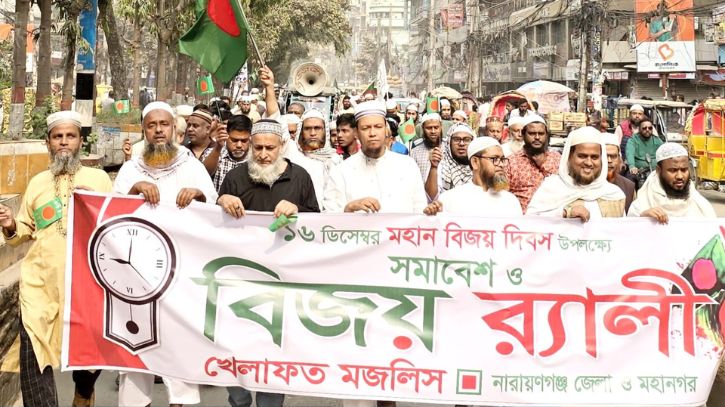 মহান বিজয় দিবস উপলক্ষে নারায়ণগঞ্জে বিজয় র্যালির আয়োজন করেছে খেলাফত মজলিস নারায়ণগঞ্জ মহানগর শাখা।