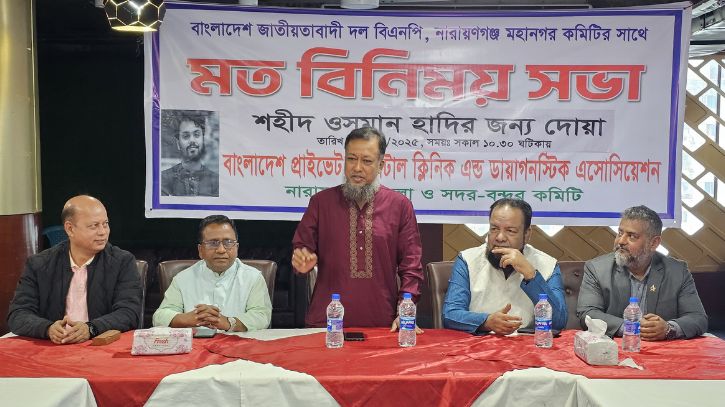 নারায়ণগঞ্জে বিএনপির সঙ্গে সৌহার্দ্যপূর্ণ মতবিনিময় সভা ও শহীদ ওসমান হাদির রূহের মাগফিরাত কামনায় দোয়া মাহফিলের সময় প্রাইভেট ক্লিনিক ও হাসপাতালের চিকিৎসকদের প্রতি সপ্তাহে অন্তত একজন অসহায় রোগীকে বিনামূল্যে চিকিৎসা দেওয়ার আহ্বান জানান নারায়ণগঞ্জ মহানগর বিএনপির সদস্য সচিব অ্যাডভোকেট মো. আবু আল ইউসুফ খান টিপু।