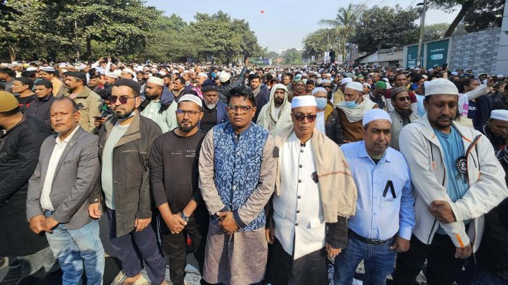 বুধবার (৩১ ডিসেম্বর) সকালে জানাজায় অংশ নিতে নগরীর মিশনপাড়া এলাকা থেকে রাজধানীর মানিক মিয়া অ্যাভিনিউতে অবস্থান নেন তারা। পরে বিকেল ৩টায় প্রয়াত সাবেক প্রধানমন্ত্রীর জানাজায় অংশগ্রহণ করেন নেতাকর্মীরা।