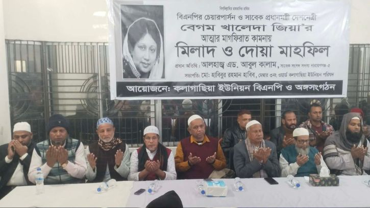 বিএনপি চেয়ারপারসন ও সাবেক প্রধানমন্ত্রী বেগম খালেদা জিয়ার বিদেহী আত্মার মাগফিরাত কামনায় কলাগাছিয়া ইউনিয়ন বিএনপির উদ্যোগে দোয়া মাহফিল অনুষ্ঠিত হয়েছে।
