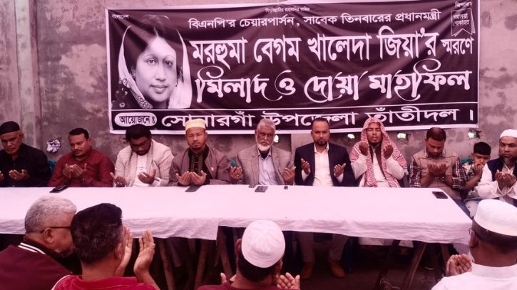 সোনারগাঁ উপজেলা তাঁতী দলের উদ্যোগে বিএনপির সাবেক চেয়ারপার্সন বেগম খালেদা জিয়ার রুহের মাগফিরাত কামনায় মিলাদ ও দোয়া মাহফিল অনুষ্ঠিত হয়েছে।