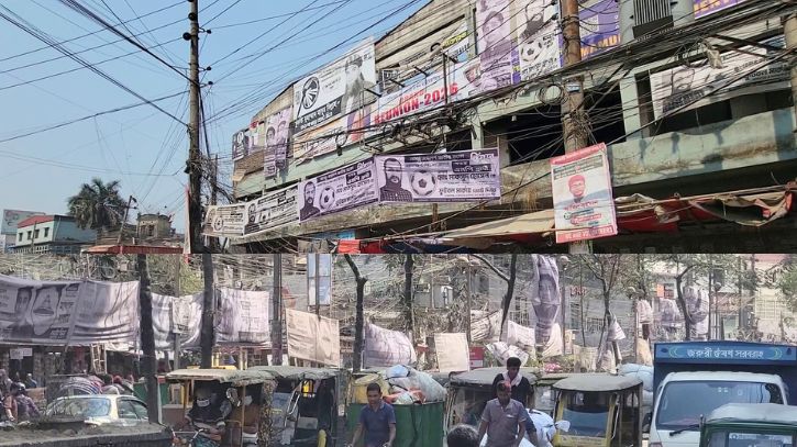 নারায়ণগঞ্জে ৪৮ ঘণ্টা পেরোলেও ঝুলছে প্রার্থীদের ব্যানার-ফেস্টুন
